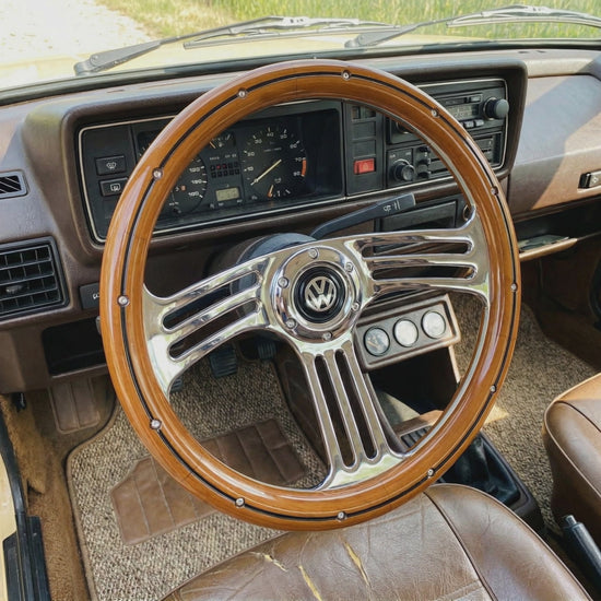 The 14" diameter fits well in most classic Volkswagen interiors. The patina and finish match retro dashboards and trim. VW steering wheel selection at Punk Wheels ensures the right look for your ride.